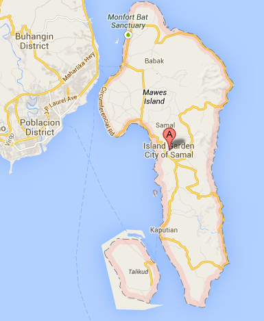 Samal, a part of the Metropolitan Davao area, is a 2nd class city in the province of Davao del Norte. Its official name is the Island Garden City of Samal. It has a population of 95,874 people according to 2010 NSO Census.